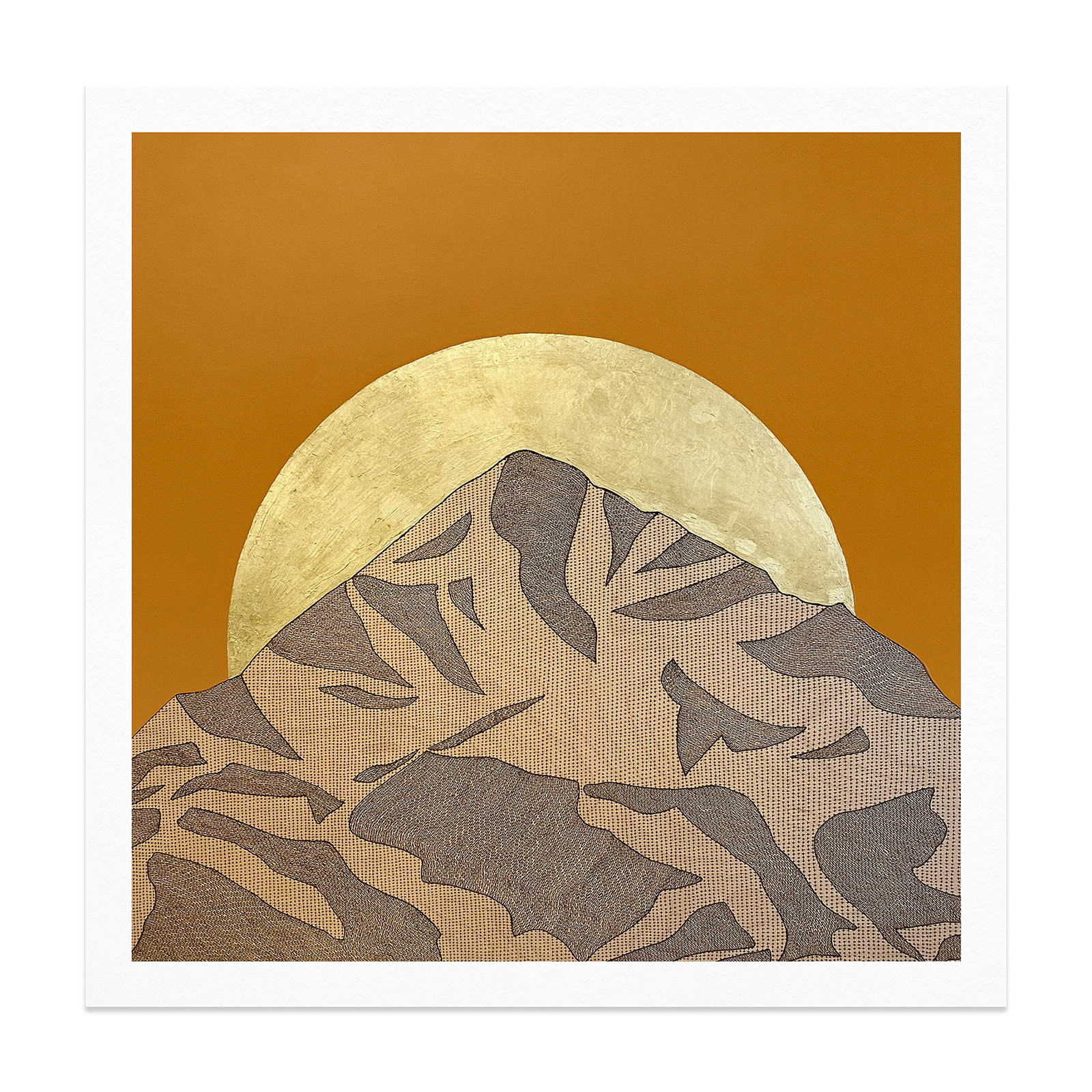 Professional quality 10" x 10" archival giclée print with hand-painted gold acrylic paint on Aurora Art White 300gsm paper. Bagged with acid free foam core backing.