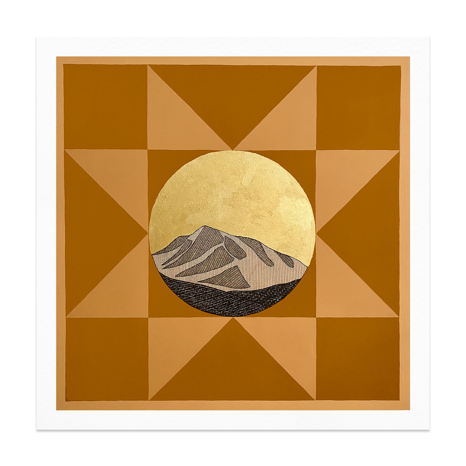 Professional quality 10" x 10" archival giclée print with hand-painted gold acrylic paint on Aurora Art White 300gsm paper. Bagged with acid free foam core backing.